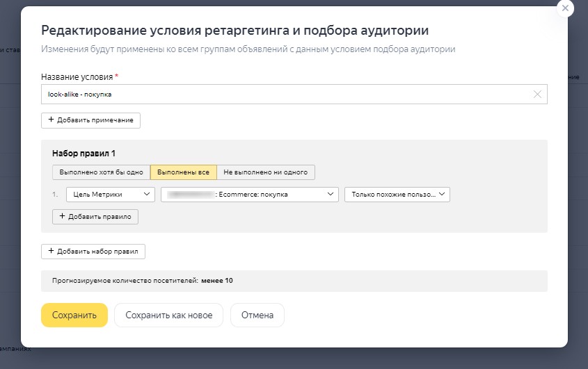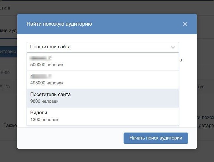 Выберите «Сегмент похожих пользователей» и выберите исходную аудиторию.