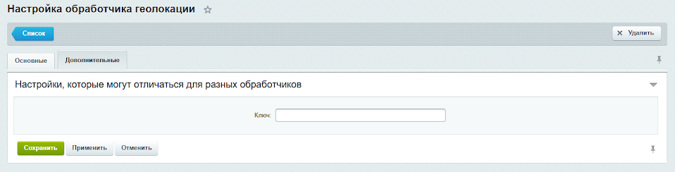 Вернитесь в административную панель сайта и в разделе «Администрирование» → «Настройки» → «Настройки продукта» → «Геолокация» откройте настройки Sypex Geo → «Дополнительно». Вставьте скопированный ключ API в соответствующее поле и кликните «Сохранить».