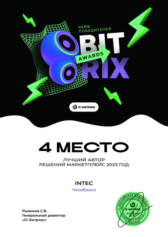 Состоялась традиционная премия партнеров «1С-Битрикс». По итогам 2023 года наша компания вошла в число лучших авторов готовых решений. Также мы попали в ТОП-3 лидеров продаж по УрФО и России.