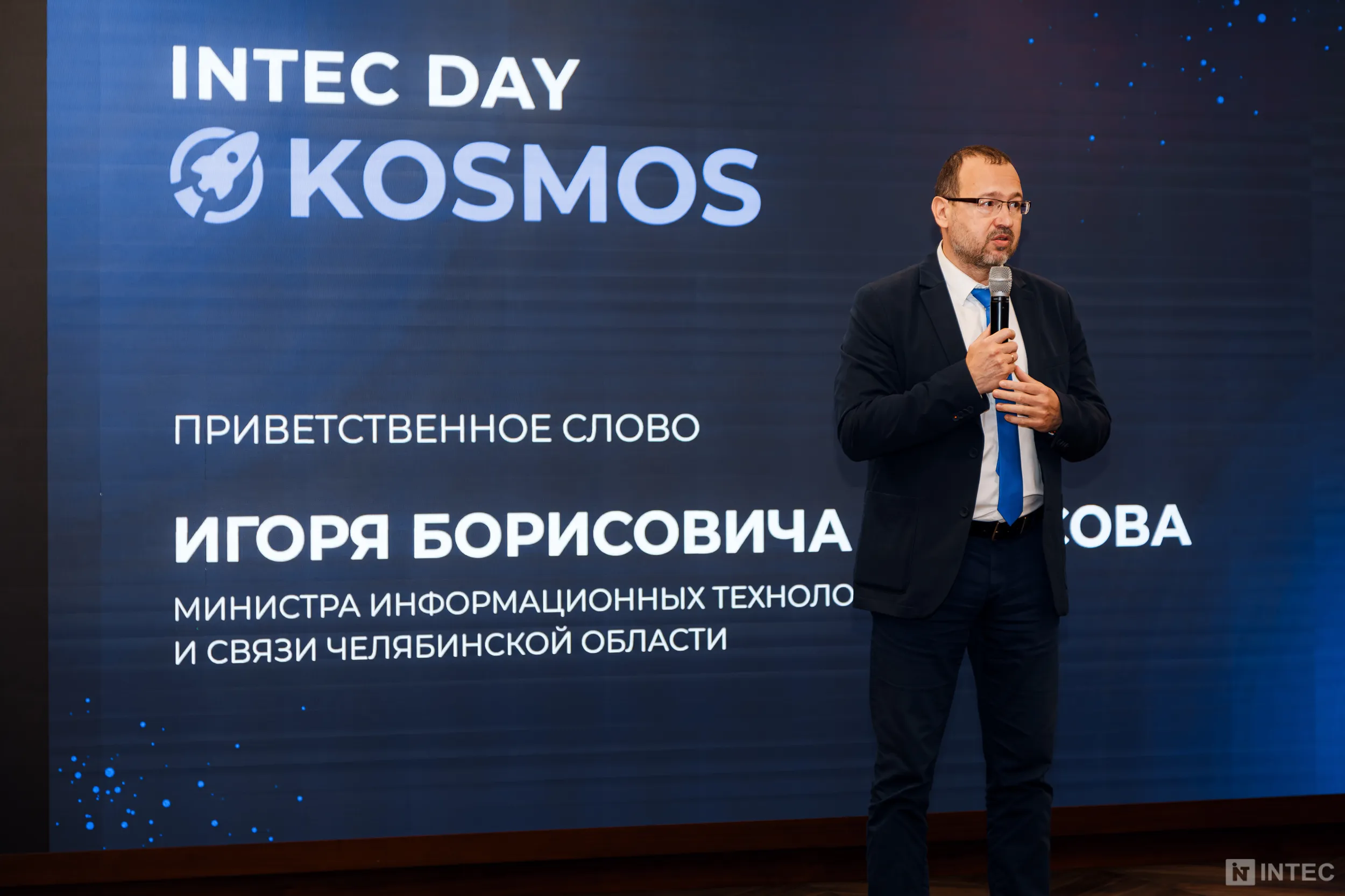 Конференцию открыл Министр информационных технологий, связи и цифрового развития Челябинской области. Игорь Борисович Фетисов выступил с приветственным словом, отметил высокий потенциал цифровизации региона и выразил искреннюю заинтересованность в развитии и популяризации нашего нового продукта INTEC.KOSMOS.