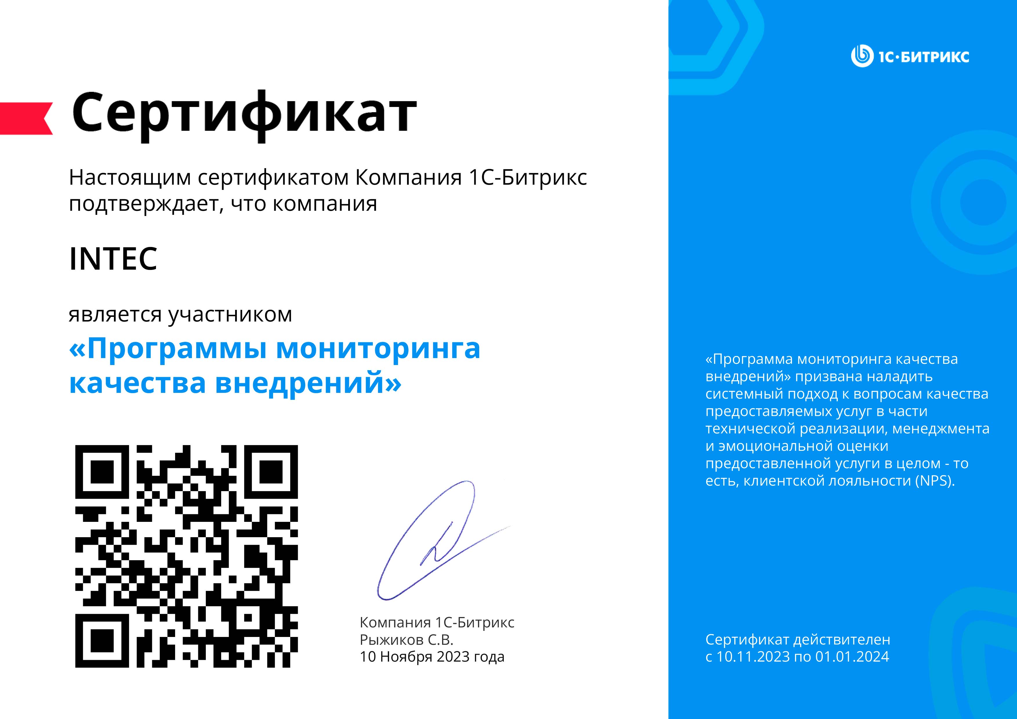 Мы стремимся поддерживать и повышать нашу квалификацию, чтобы в следующем году вновь подтвердить наш статус и реализовывать еще более сложные и амбициозные проекты. Спасибо за ваш выбор и доверие к INTEC!