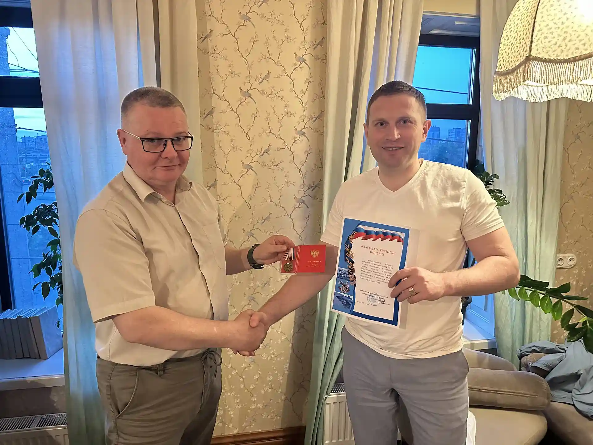В завершение встречи Олег Павлович передал через регионального координатора «Цифровой России» Ярослава Голуб благодарственное письмо и медаль «Патриот России» директору ООО «ЕЧИПС ИМПОРТ» Хужиахметову Каилю Юмабаевичу за значимую материальную, техническую и финансовую поддержку войсковой части 29596.