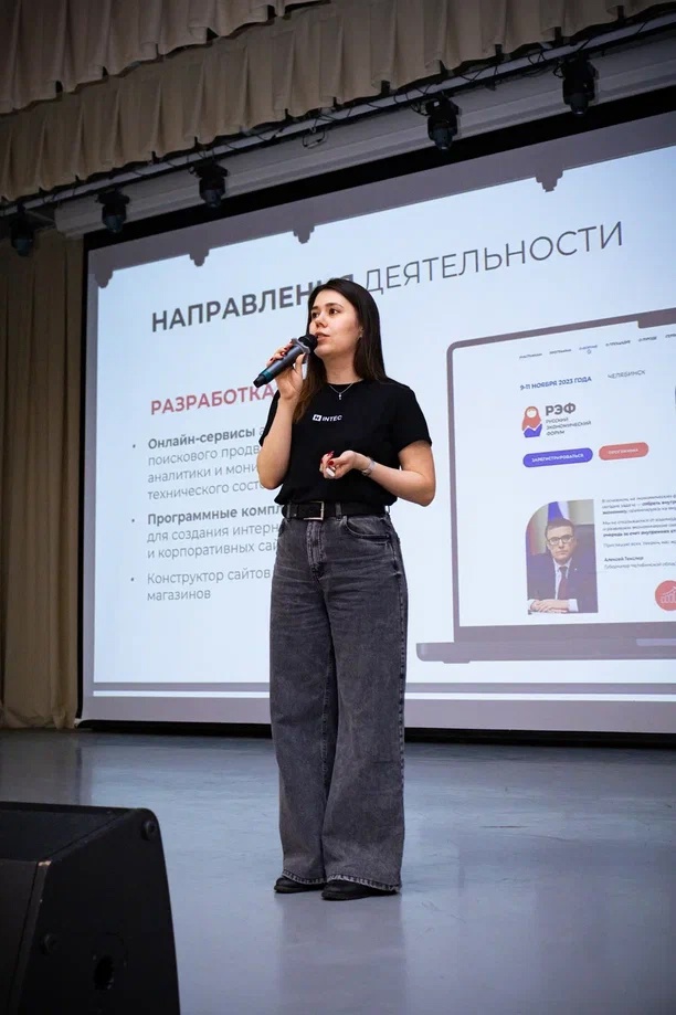 HR-менеджер Дарья Марфина представила основные направления деятельности нашего digital-агентства и объяснила, как пройти практику или стажировку в INTEC. Для студентов это уникальная возможность погрузиться в реальные проекты и поработать с профессионалами своего дела.