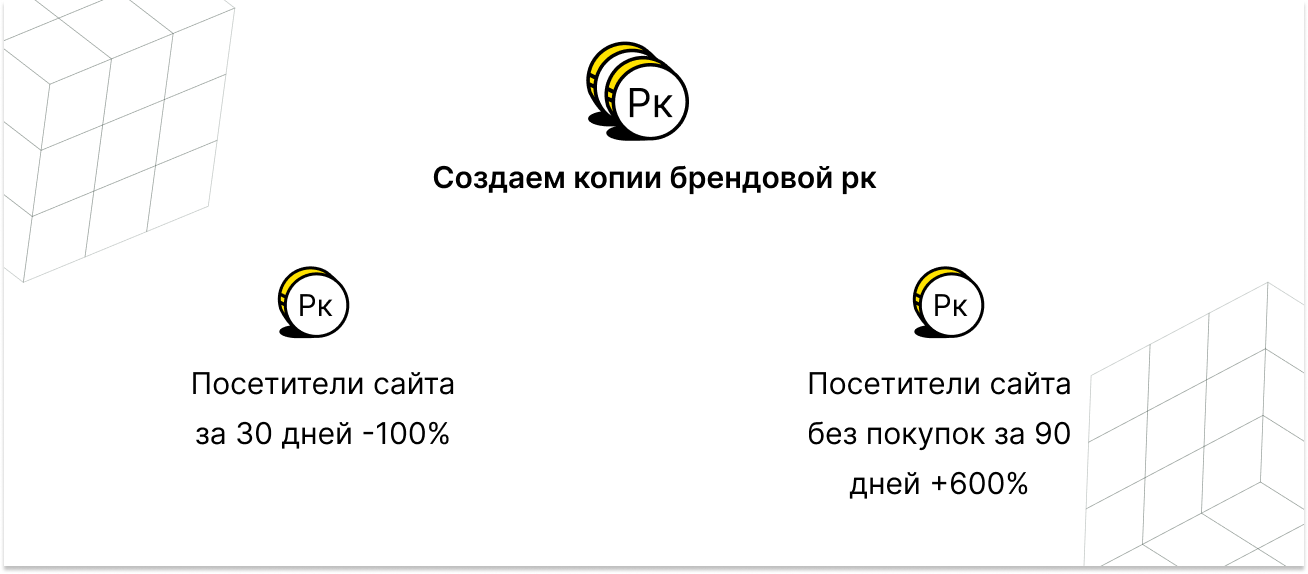 • Повышали для конверсионных пользователей и тех, кто достиг определенных целей на сайте: добавление товара в корзину, в избранное, микроконверсии, посещение более N страниц на сайте, просмотр определенных страниц, категорий, брендов и т. п.