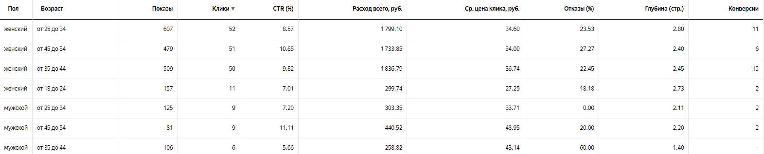 В процессе работы кампаний стало понятно, какие ключевые слова эффективны, а какие не приносят результаты. Наиболее подходящими были общие ключи, фразы с коммерческими привязками (купить, интернет-магазин и пр.) и ключевые слова по конкретным товарам.