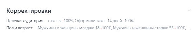 • Установка возрастных ограничений. Неплатежеспособные пользователи младше 18 лет и аудитория старше 55 лет — статистически менее активная в онлайн-покупках торгового оборудования, исключены из таргетинга.