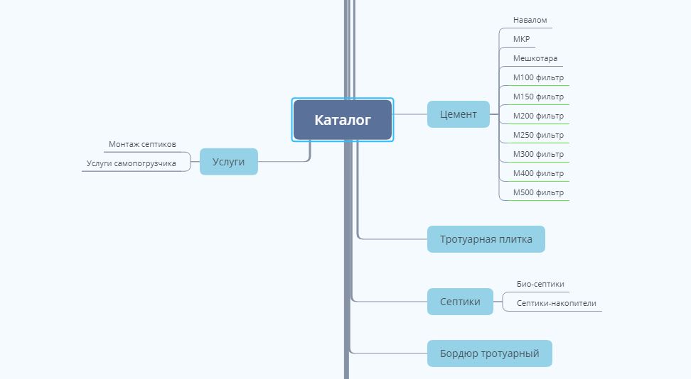 Проанализировав сайты конкурентов, мы создали грамотную структуру, которая была бы логична как для поисковиков (т.к она делалась на основе семантического ядра), так и для пользователей. Фрагмент структуры: