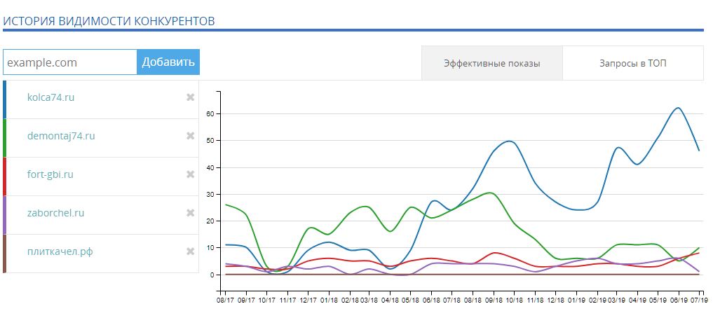 Посмотрите, как менялось количество посетителей сайта в зависимости от % запросов в Топ-10