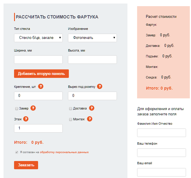 • Кнопка «купить», «заказать», или «положить в корзину» находится после всех элементов;
