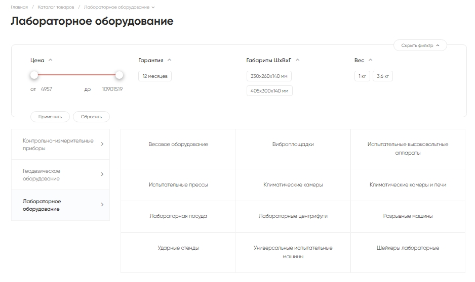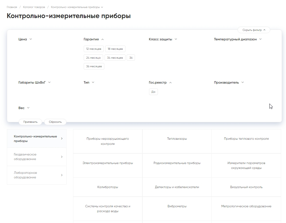 2. Структура каталога была создана таким образом, чтобы получить посадочные страницы под собранную семантику. Также мы разработали фильтры для товаров, чтобы: