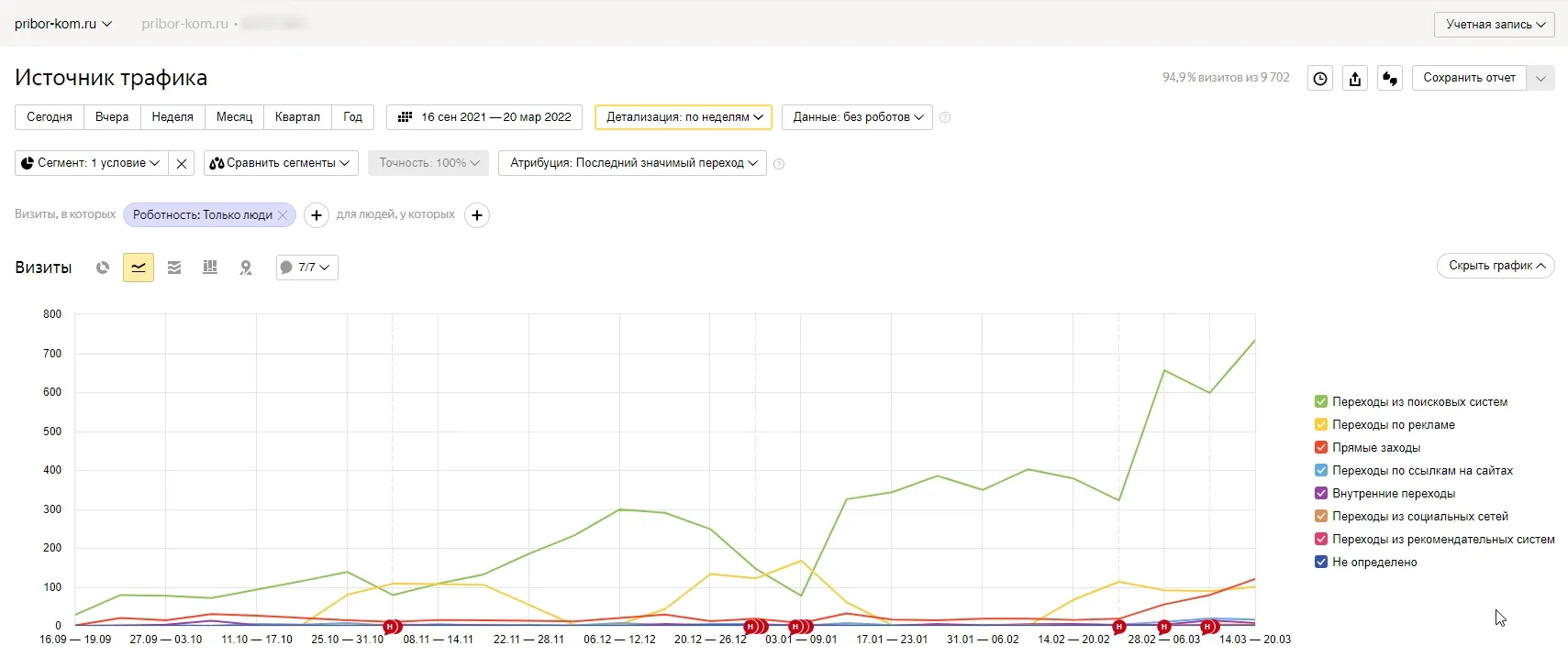 За полгода продвижения удалось увеличить трафик на сайте 3,5 раз. График посещаемости представлен ниже.