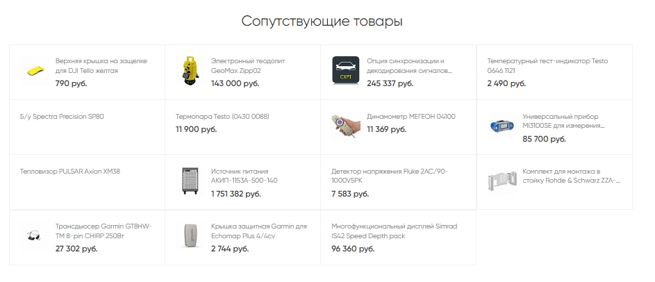 Ниже мы добавили блок «С этим товаром покупают», там отображаются товары, которые способны увеличить чек покупки. Для каждого товара продуман список сопутствующих товаров.