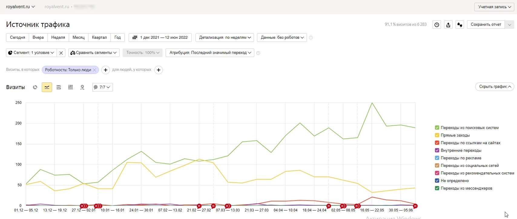 5. После этого мы работали со ссылочным профилем сайта. Качественный ссылочный профиль помогает ресурсу ранжироваться. Работа над формированием внешнего ссылочного профиля включает несколько направлений — это социальные сети, сервисы «Яндекса» и Google и дополнительные площадки.