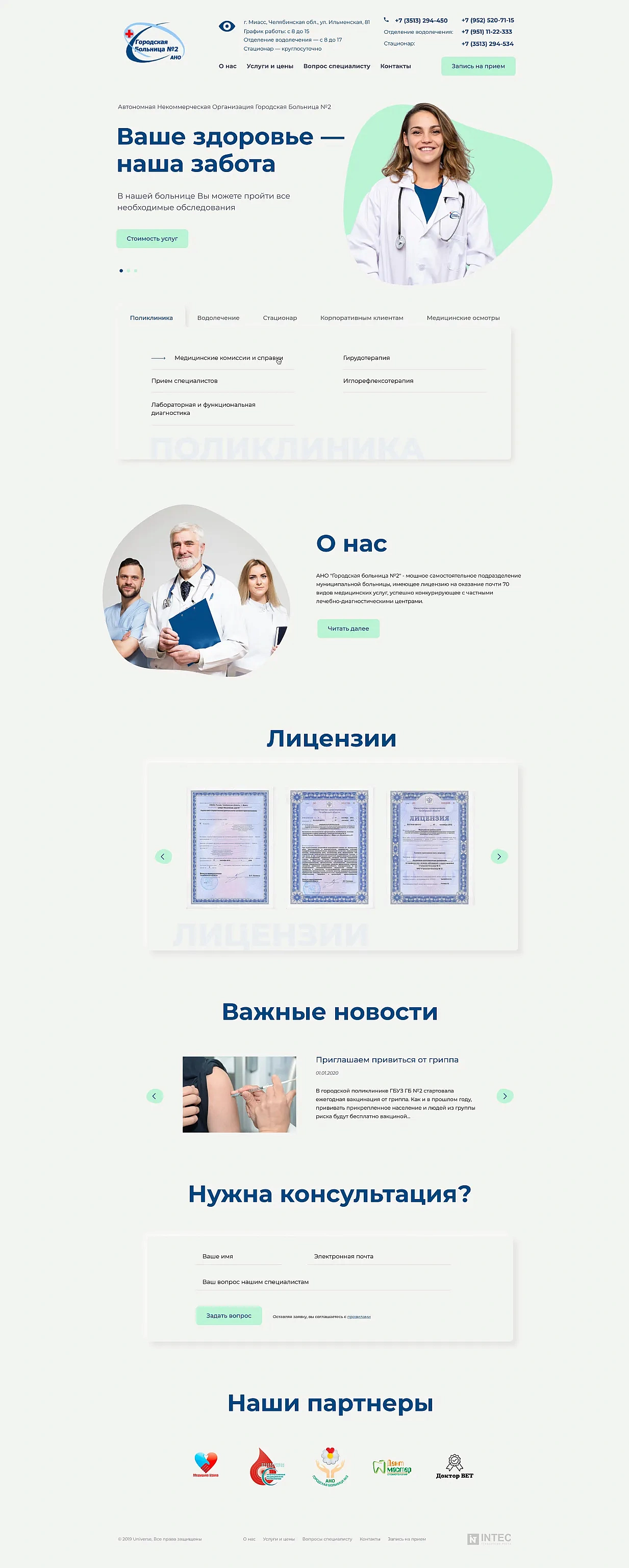 Разработка медицинского сайта АНО «Городская Больница №2»
