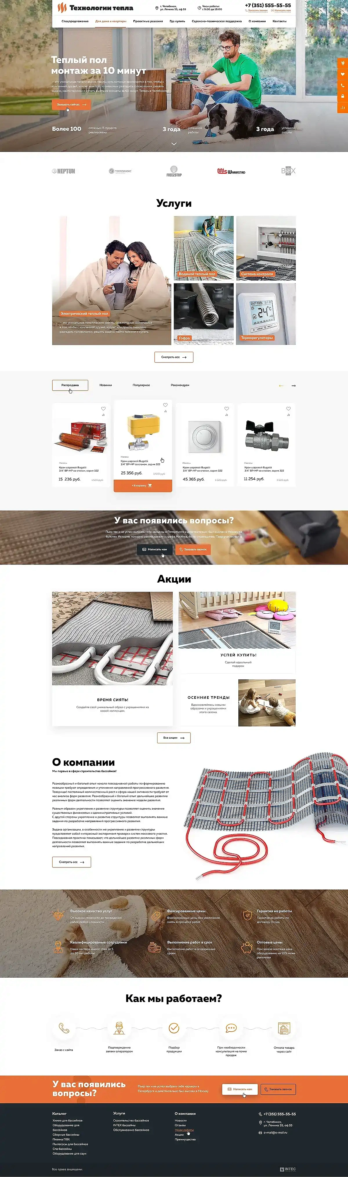 • Продающий текст про принцип работы и преимущества теплого пола подталкивают к покупке.