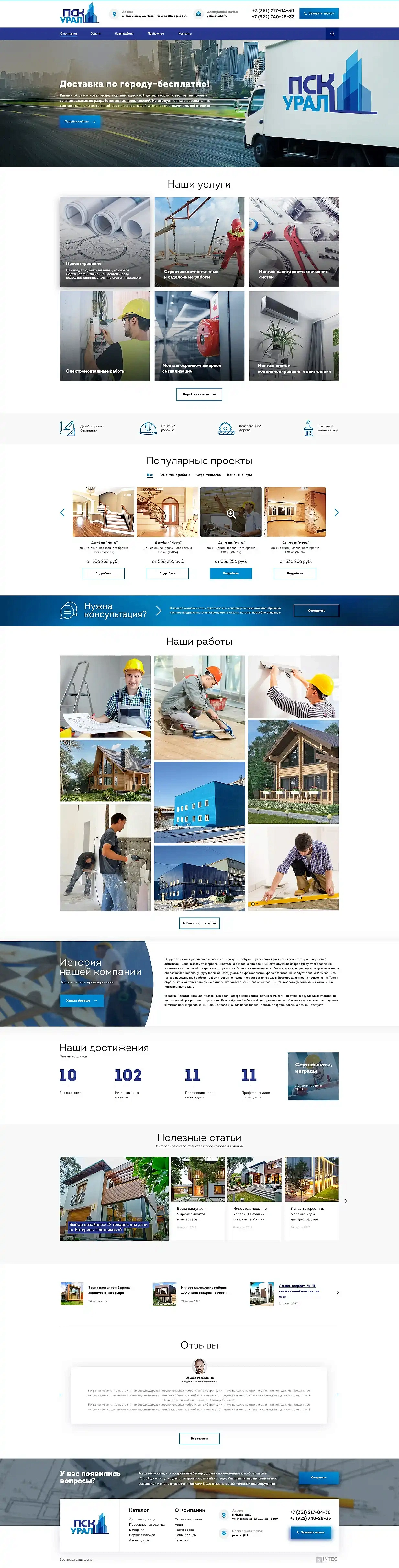 Корпоративный сайт с услугами для компании ПСК "Урал" выполнен на решении INTEC.UniverseLite.