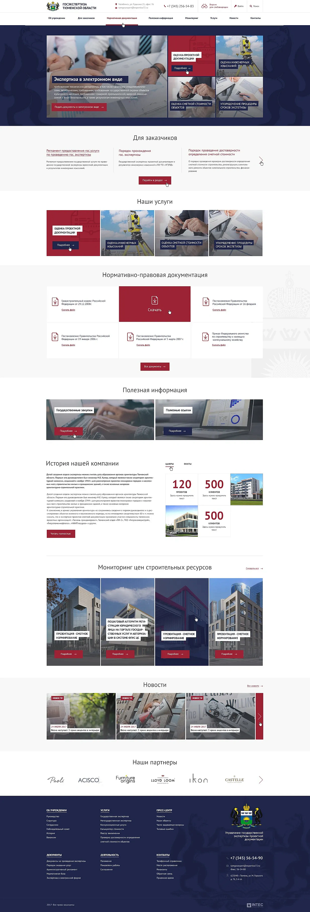 Сайт госэкспертизы Тюменской области содержит в себе все основные возможности решения INTEC.UniverseLite, но при этом, выглядит индивидуальным за счет разработанного дизайна.