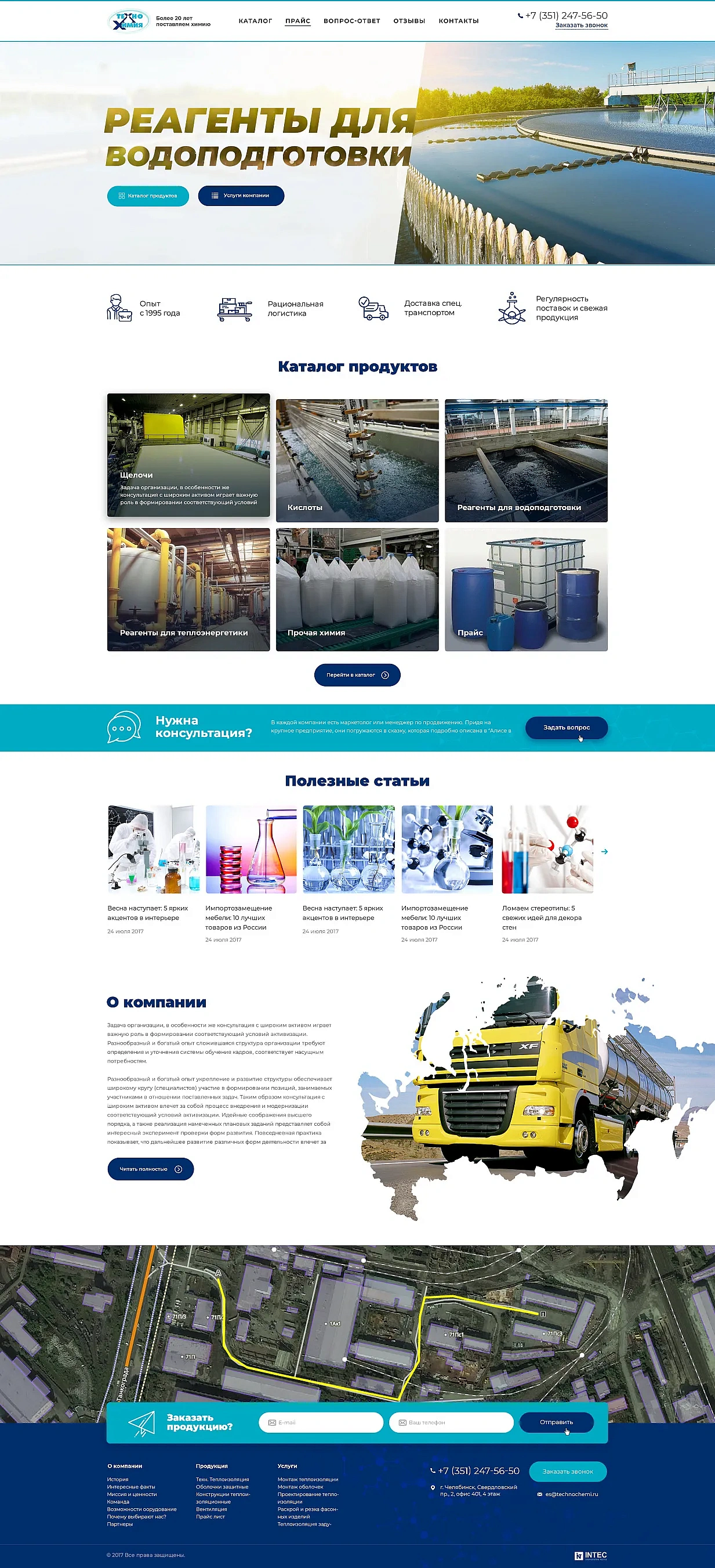 Сайт для оптового поставщика промышленной химии создан на типовом решении INTEC.UniverseSite, однако он не выглядит типовым за счет индивидуальной карточки товара, которая позволяет передать все особенности данного вида деятельности.