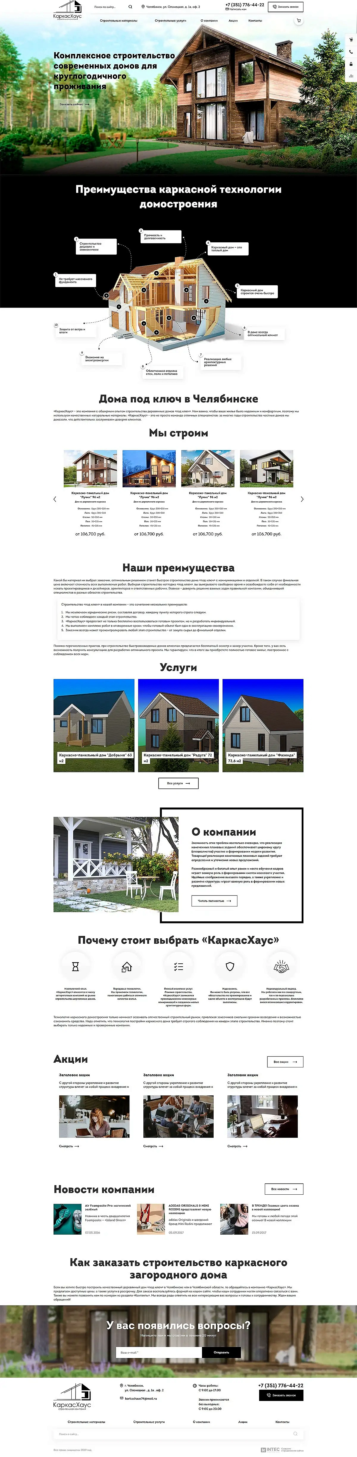 Разработка корпоративного сайта для строительной компании с интернет-магазином ООО ТСК «КаркасХаус»
