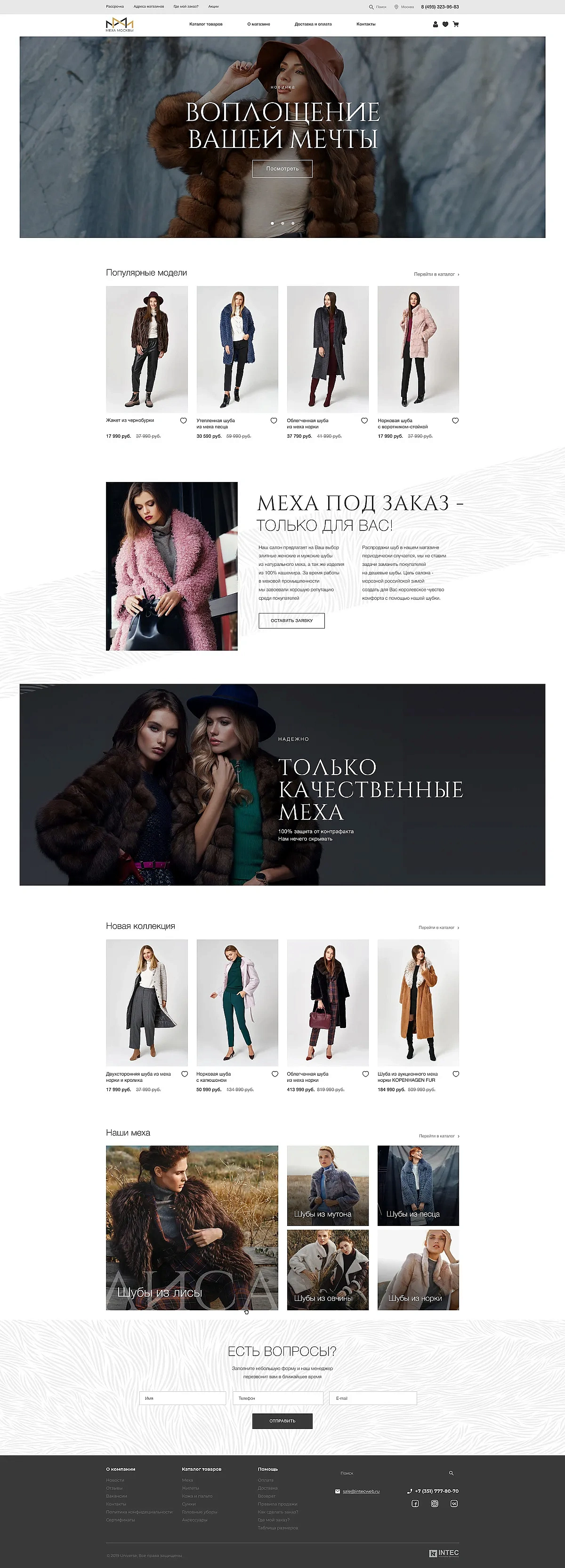 Мы позаботились и о функциональности интернет-магазина, каталог имеет удобные фильтры по: материалу, длине, типу меха. В карточке товара разместили самое важное — цена, цвет, фотографии с разных ракурсов, таблицу размеров, информацию об оплате и доставке. Также в карточку выведены отзывы клиентов.
