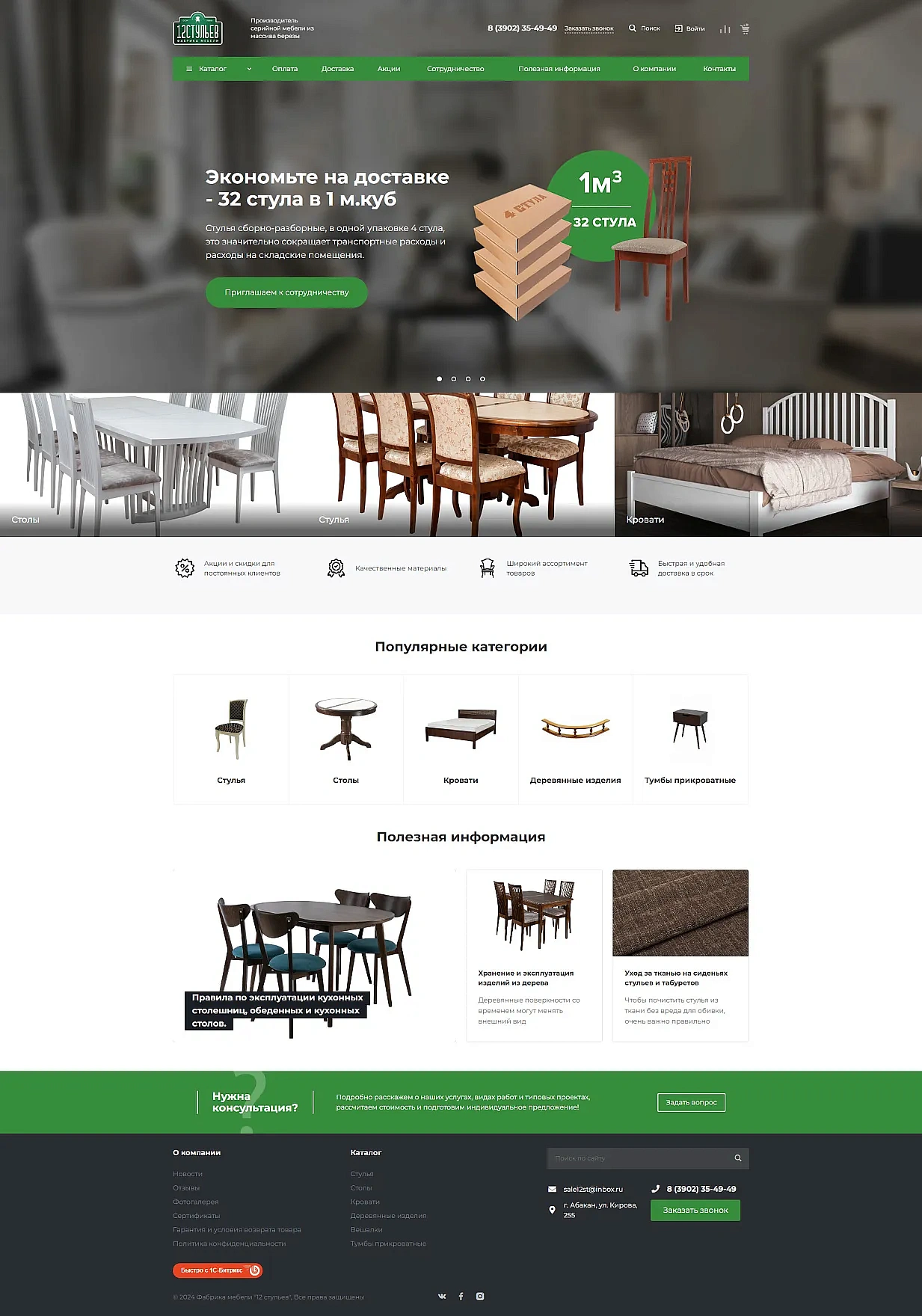 Разработка сайта для производителя серийной мебели из массива березы «12 Стульев»‎