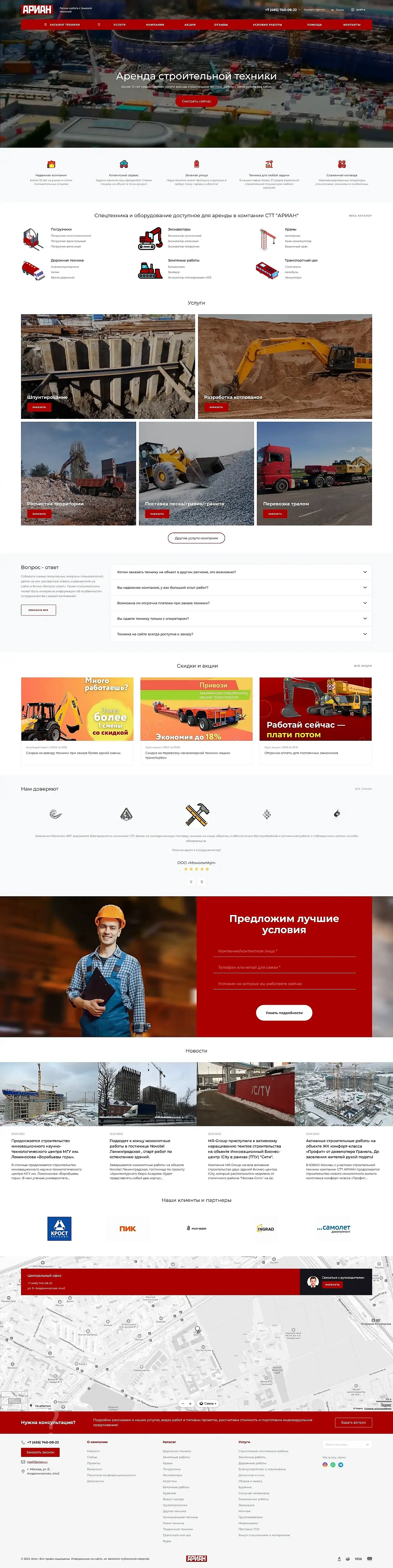 Разработка сайта для компании по аренде строительной техники СТТ «АРИАН»