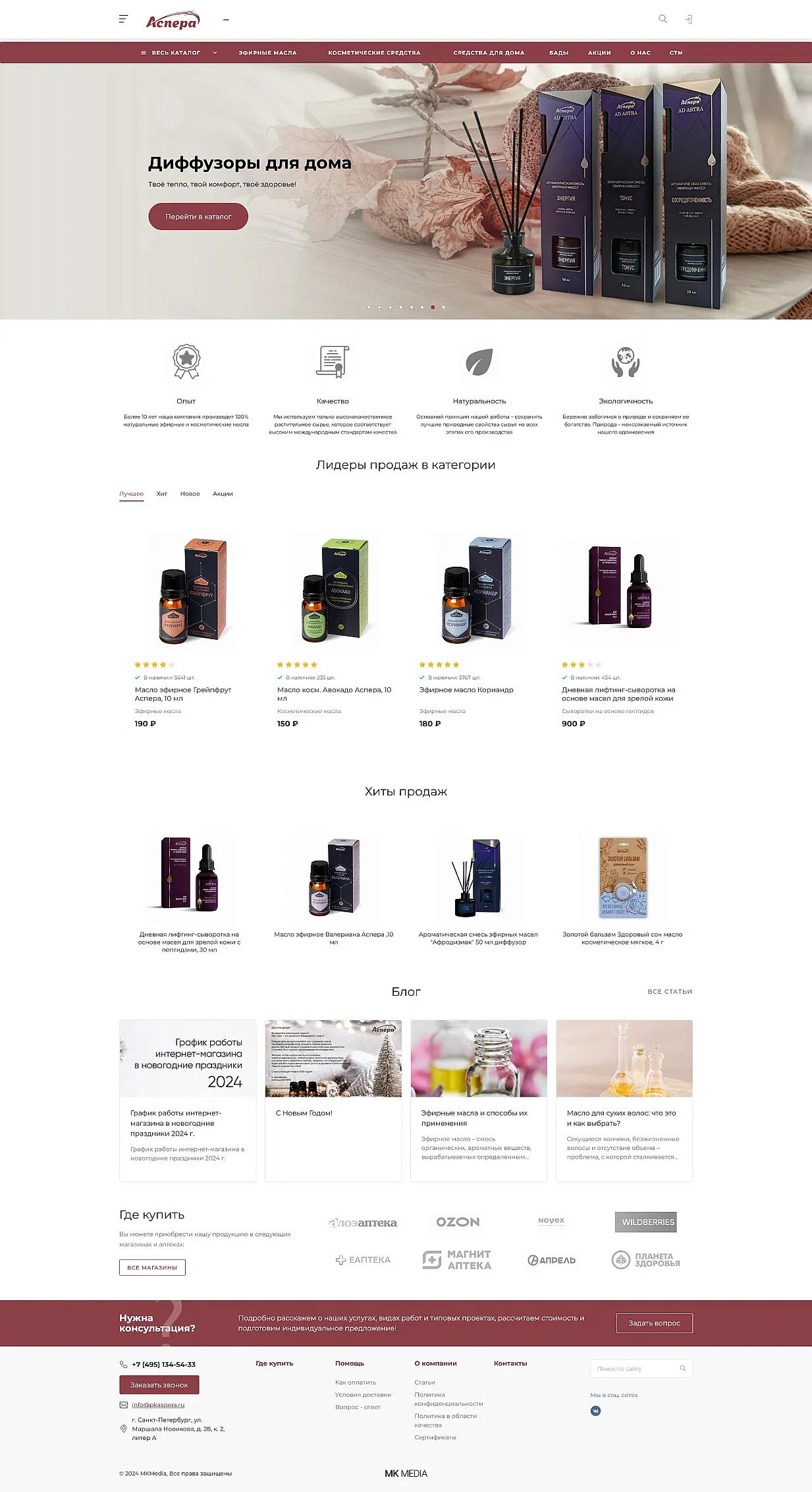 Разработка интернет-магазина косметики и БАДов Aspera