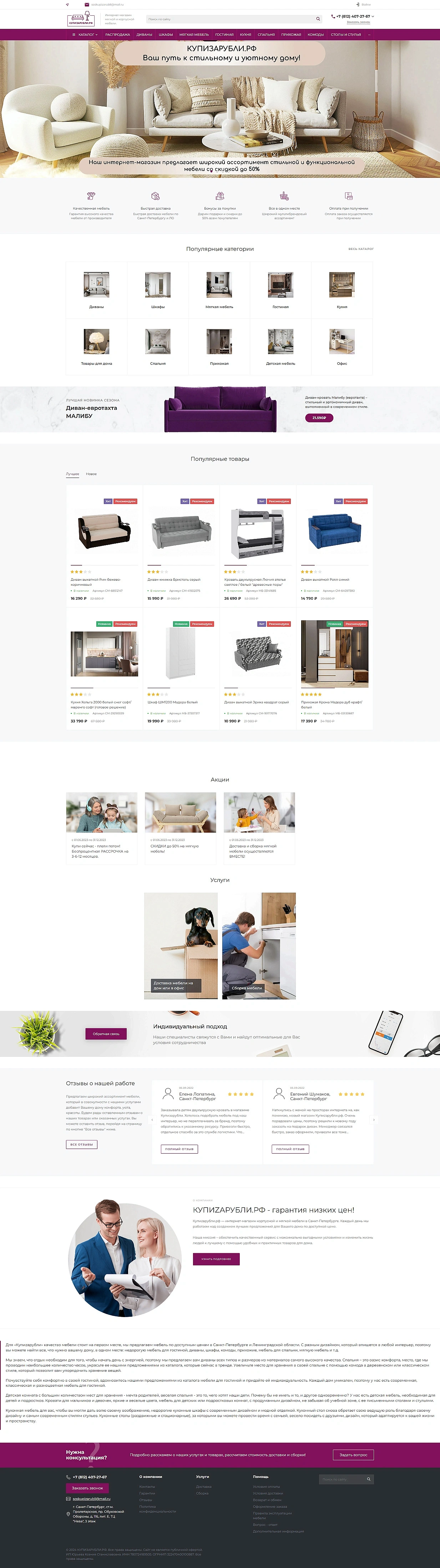 Разработка интернет-магазина мягкой и корпусной мебели КУПИZАРУБЛИ.РФ