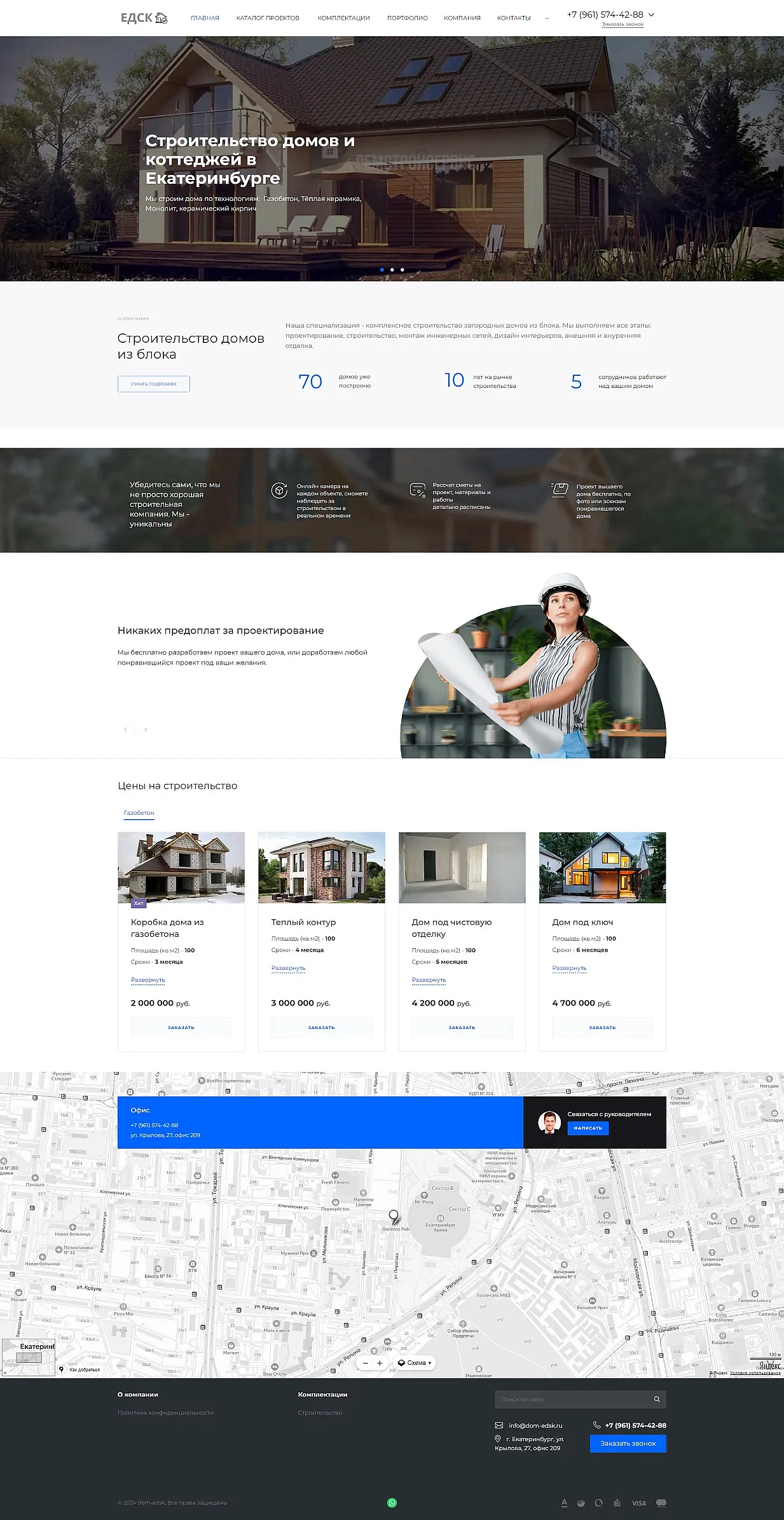 Разработка корпоративного сайта для строительной компании ООО «ЕДСК» (Екатеринбургский Домостроительный Комбинат)