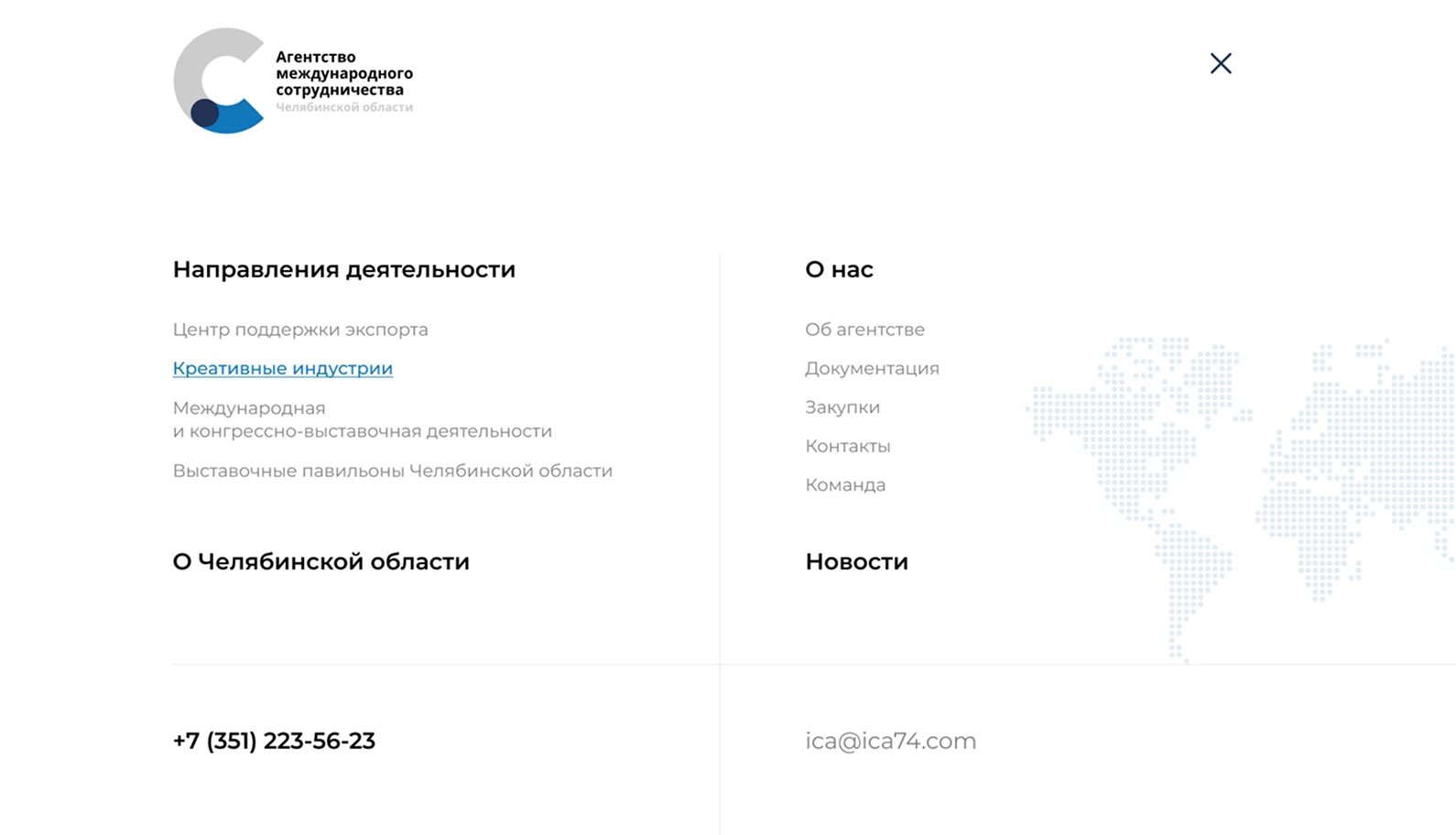 Агентство международного сотрудничества Челябинской области занимается развитием международных и межрегиональных связей, продвижением экспертного и делового потенциала региона, поддержкой креативных индустрий и формированием положительного имиджа Челябинской области на мировой арене.