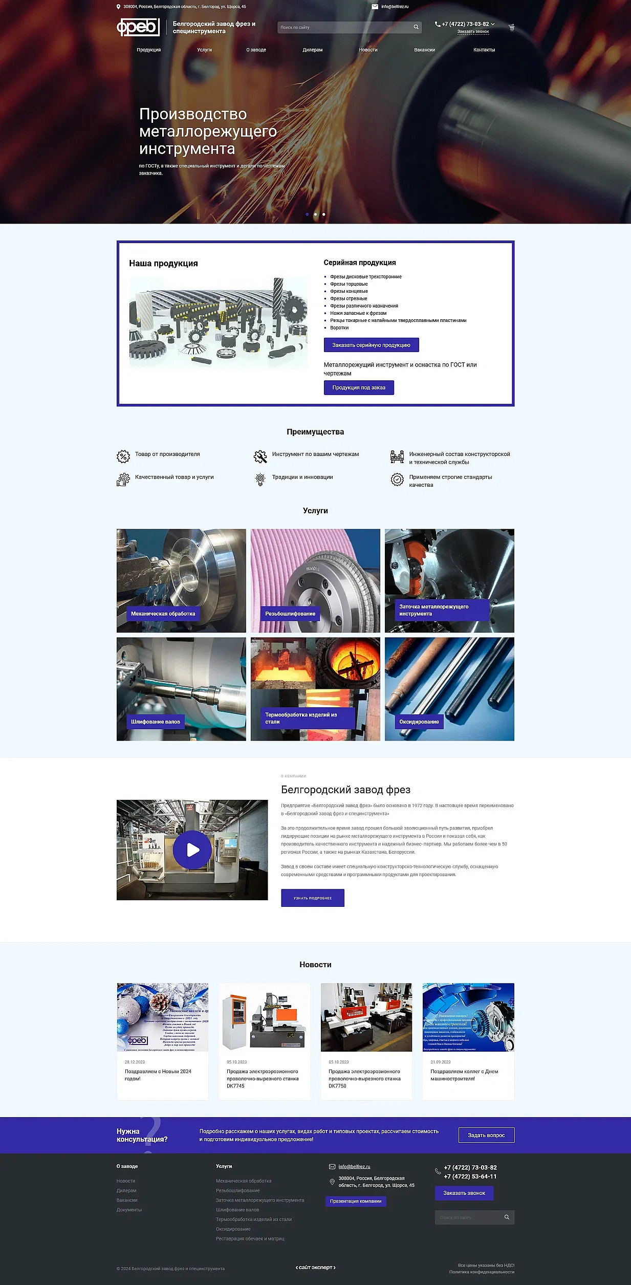 Разработка сайта для Белгородского завода фрез и специнструмента
