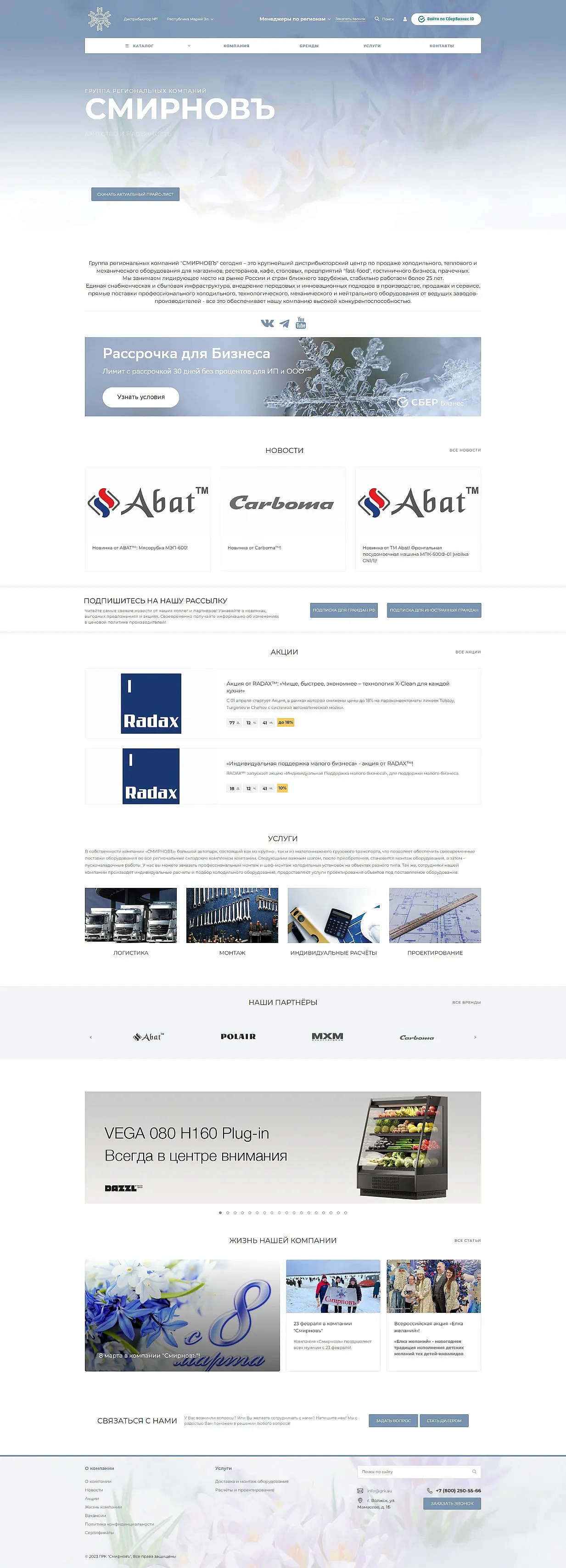 Разработка сайта для дистрибьютора холодильного оборудования «Смирновъ»