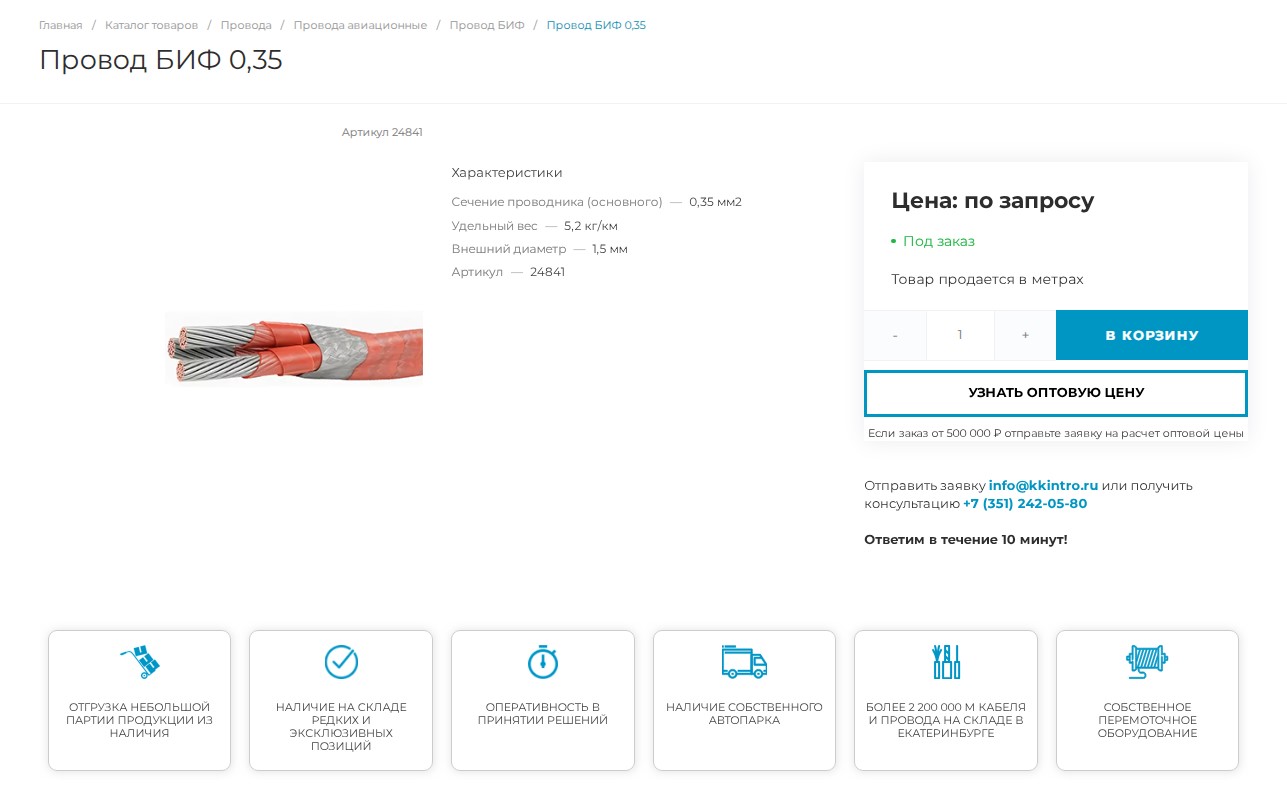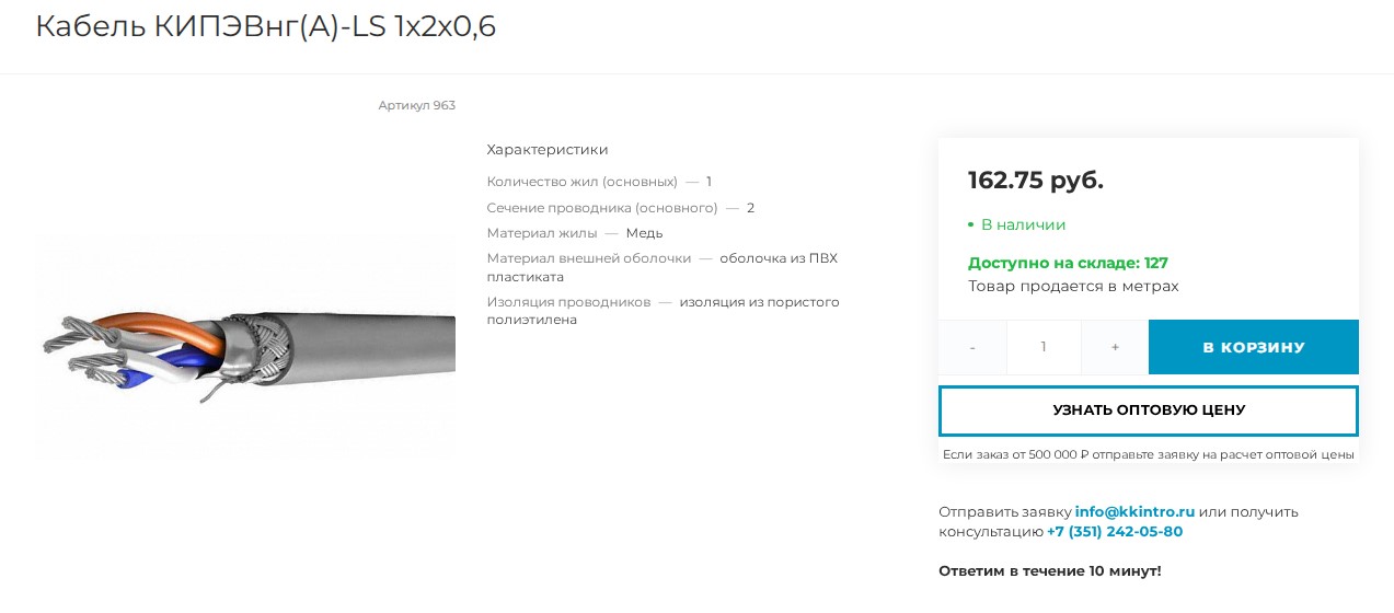 Отдельно реализован механизм покупки кабельной продукции по метражу. Пользователь может указать необходимую длину отрезка кабеля и оформить заказ через корзину без дополнительных расчетов и обращения к менеджеру. Это упрощает процесс оформления заказа, снижает количество ошибок при расчетах, повышает удобство для целевой аудитории и ускоряет обработку заявок со стороны бизнеса.