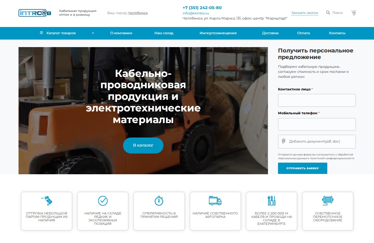 «Интро» — одна из ведущих компаний на российском рынке кабельно-проводниковой продукции с более чем 15-летним опытом работы. Компания обеспечивает широкий складской ассортимент с 2500+ марко размерами, что позволяет оперативно удовлетворять потребности крупных промышленных предприятий и других категорий клиентов.