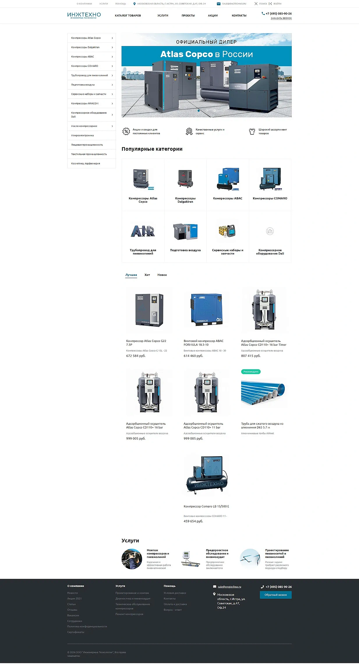 Разработка сайта для поставщика компрессорного оборудования «ИнжТехно»‎