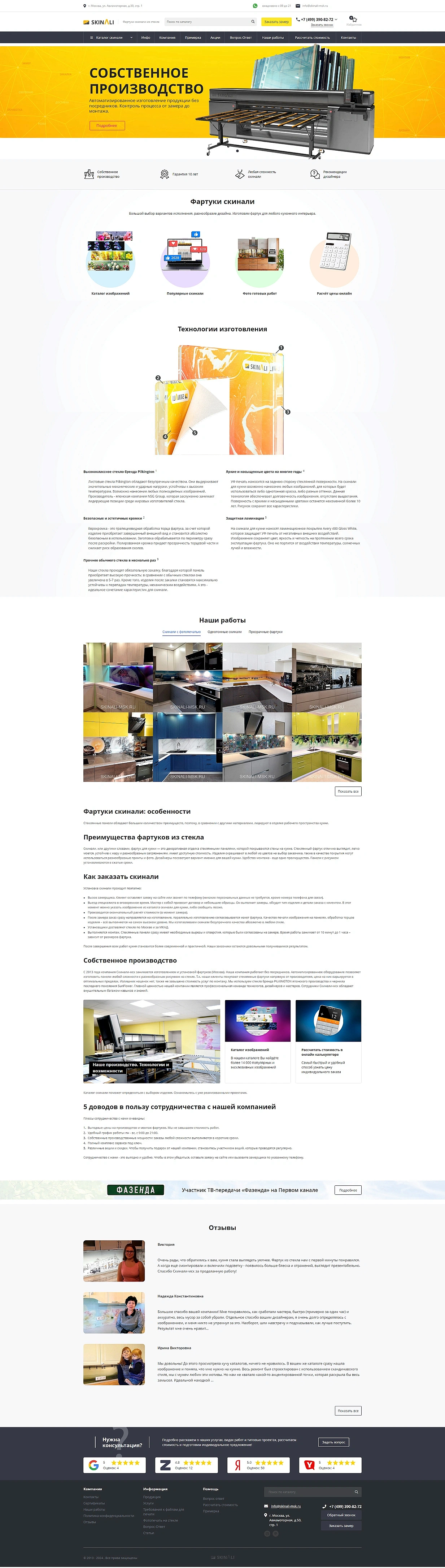 Разработка сайта для поставщика стеклянных фартуков «Скинали-Мск»‎