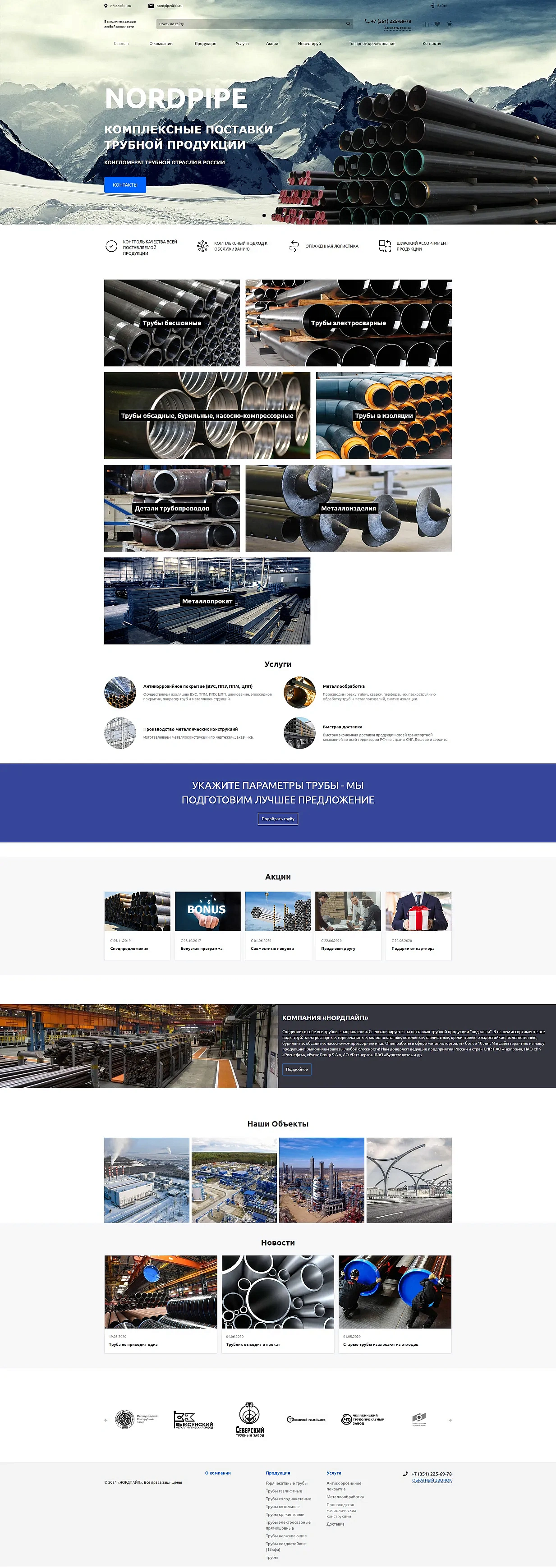 Разработка сайта для поставщика трубной продукции «Нордпайп»