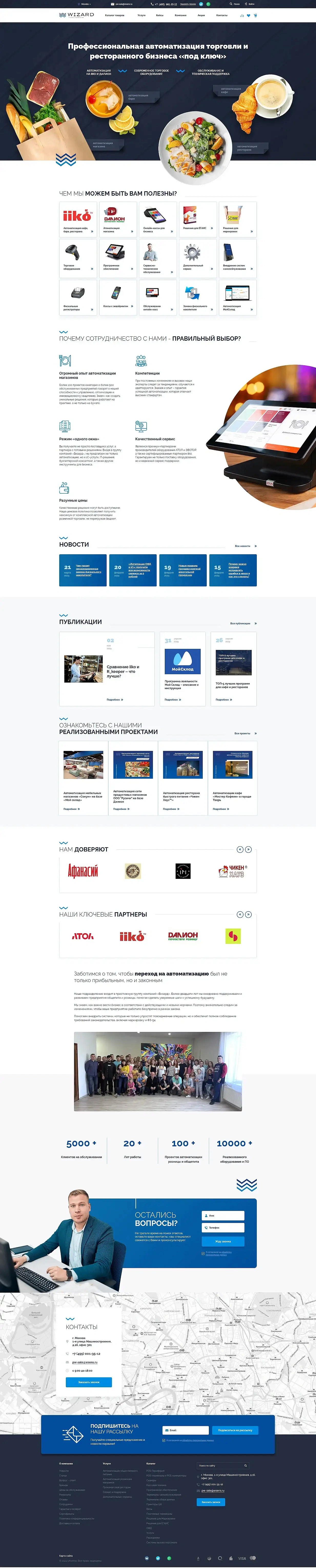 Разработка сайта для поставщика услуг автоматизации предприятий общепита и розницы Wizard Retail