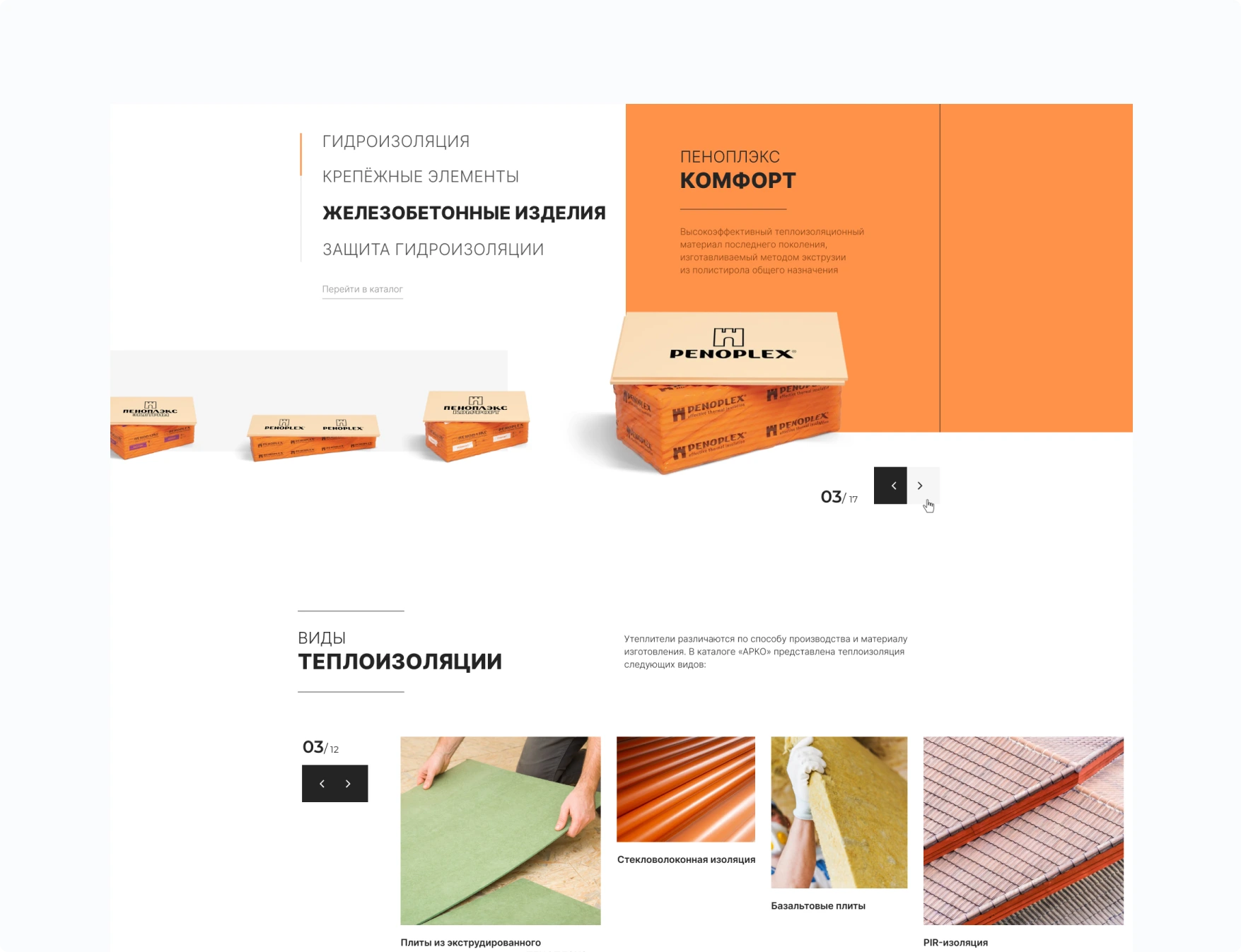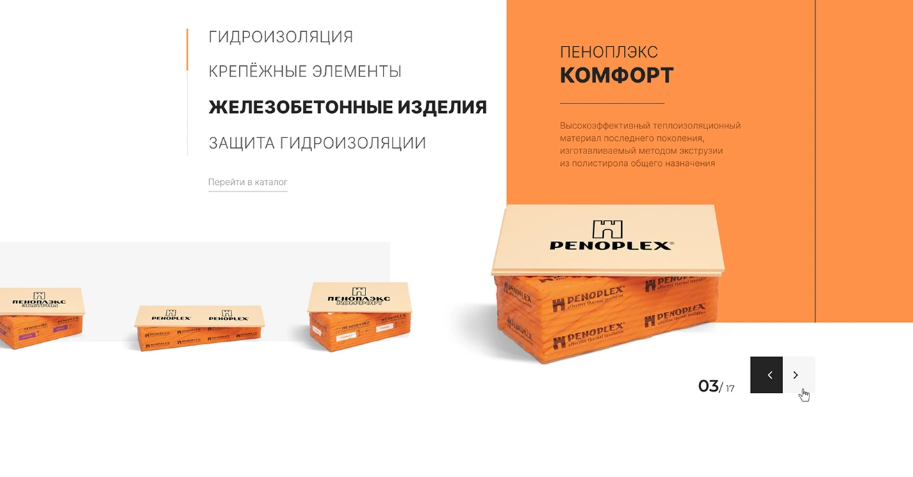 Добавили блок с ключевой услугой «Теплоизоляция». Мы сосредоточились на ее интерактивном и визуальном представлении,