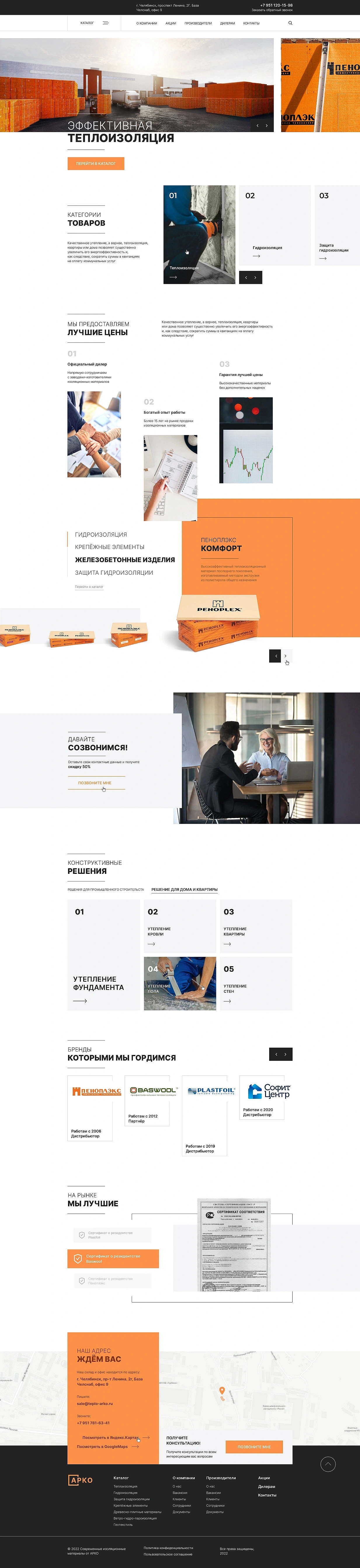 Разработка сайта для продажи теплоизоляционных и кровельных материалов «АРКО» ООО