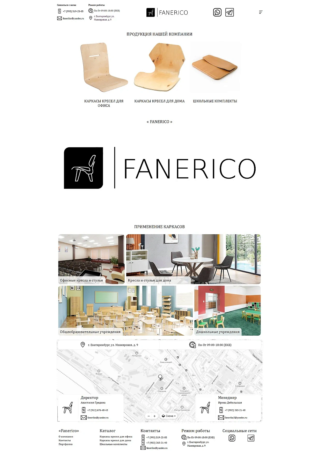 Разработка сайта для производителя гнутоклееных изделий Fanerico