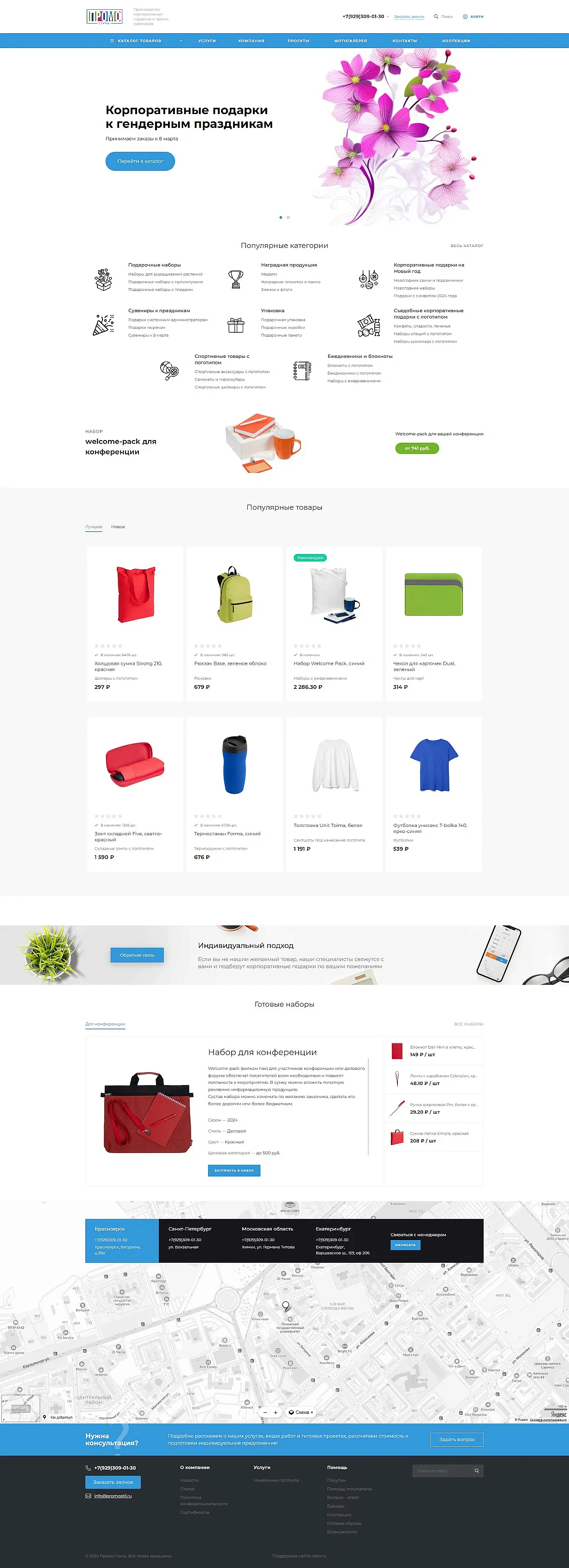 Разработка сайта для производителя корпоративных подарков и сувенирной продукции «ПРОМОСТИЛЬ»