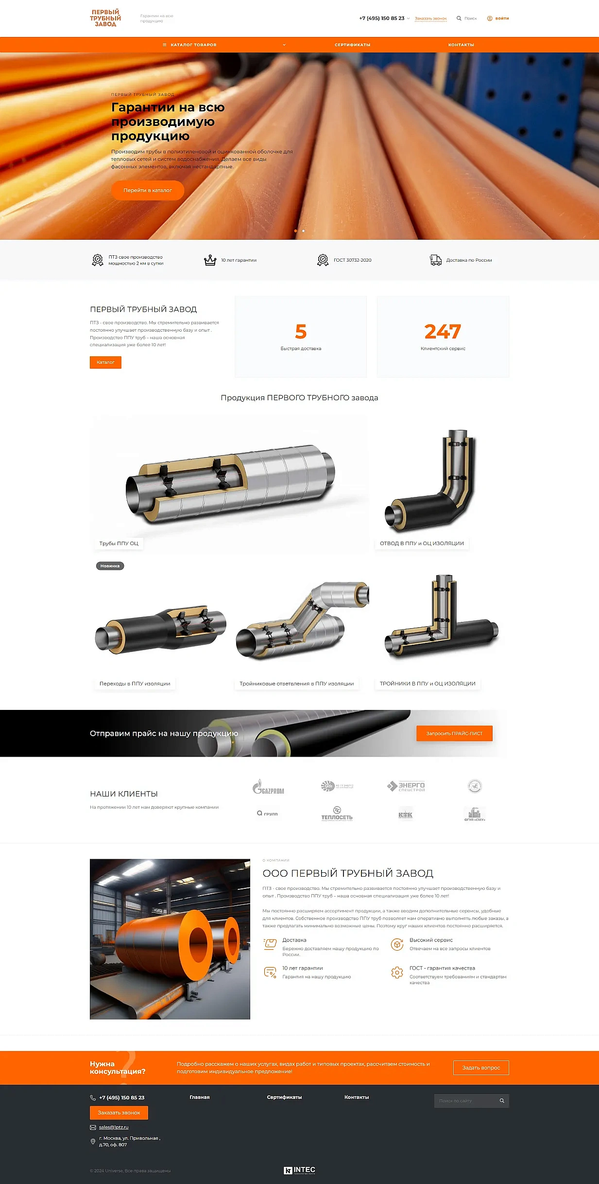 Разработка сайта для производителя металлоконструкций «Первый трубный завод»
