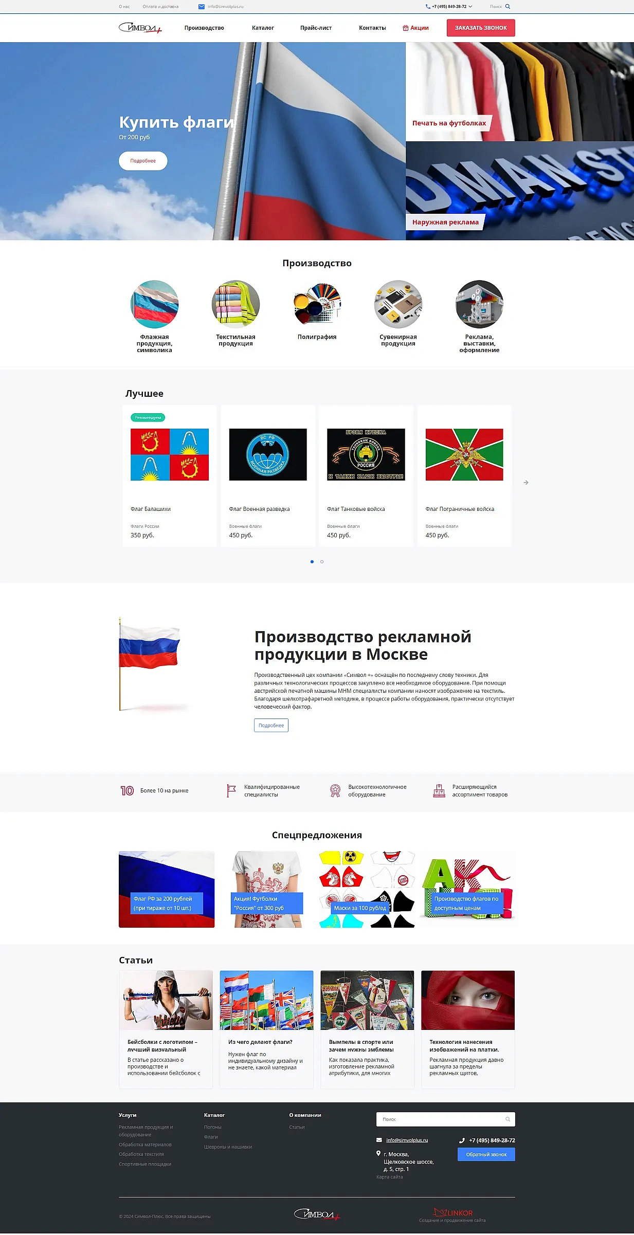 Разработка сайта для производителя рекламной и швейной продукции «Символ»‎
