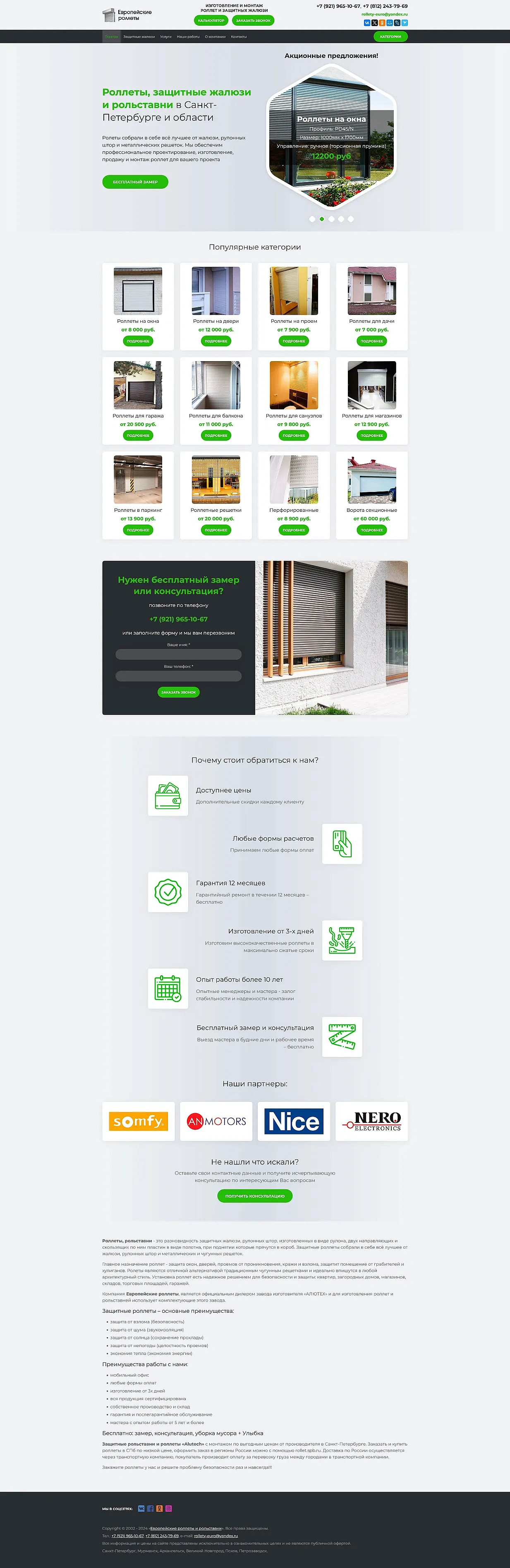 Разработка сайта для производителя роллетных систем и ворот «Европейские роллеты»