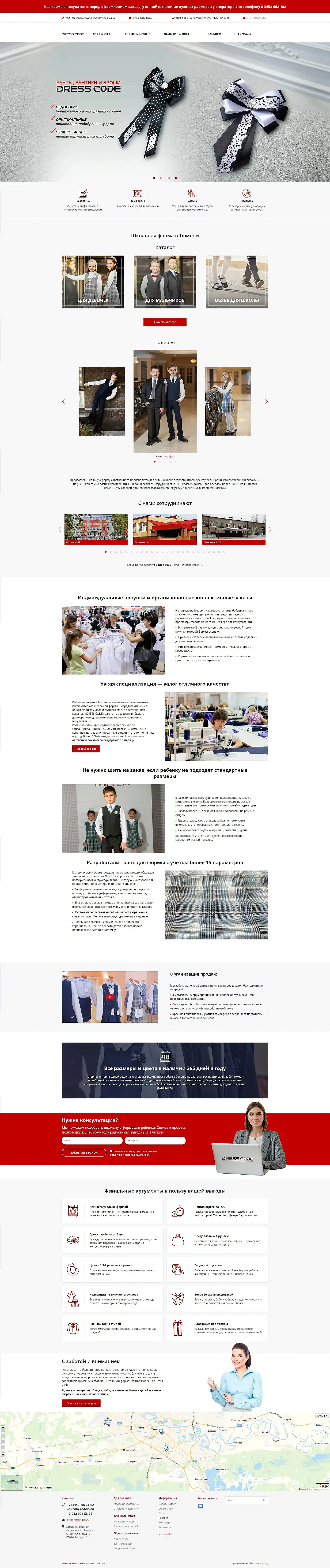 Разработка сайта для производителя школьной формы Dress Code