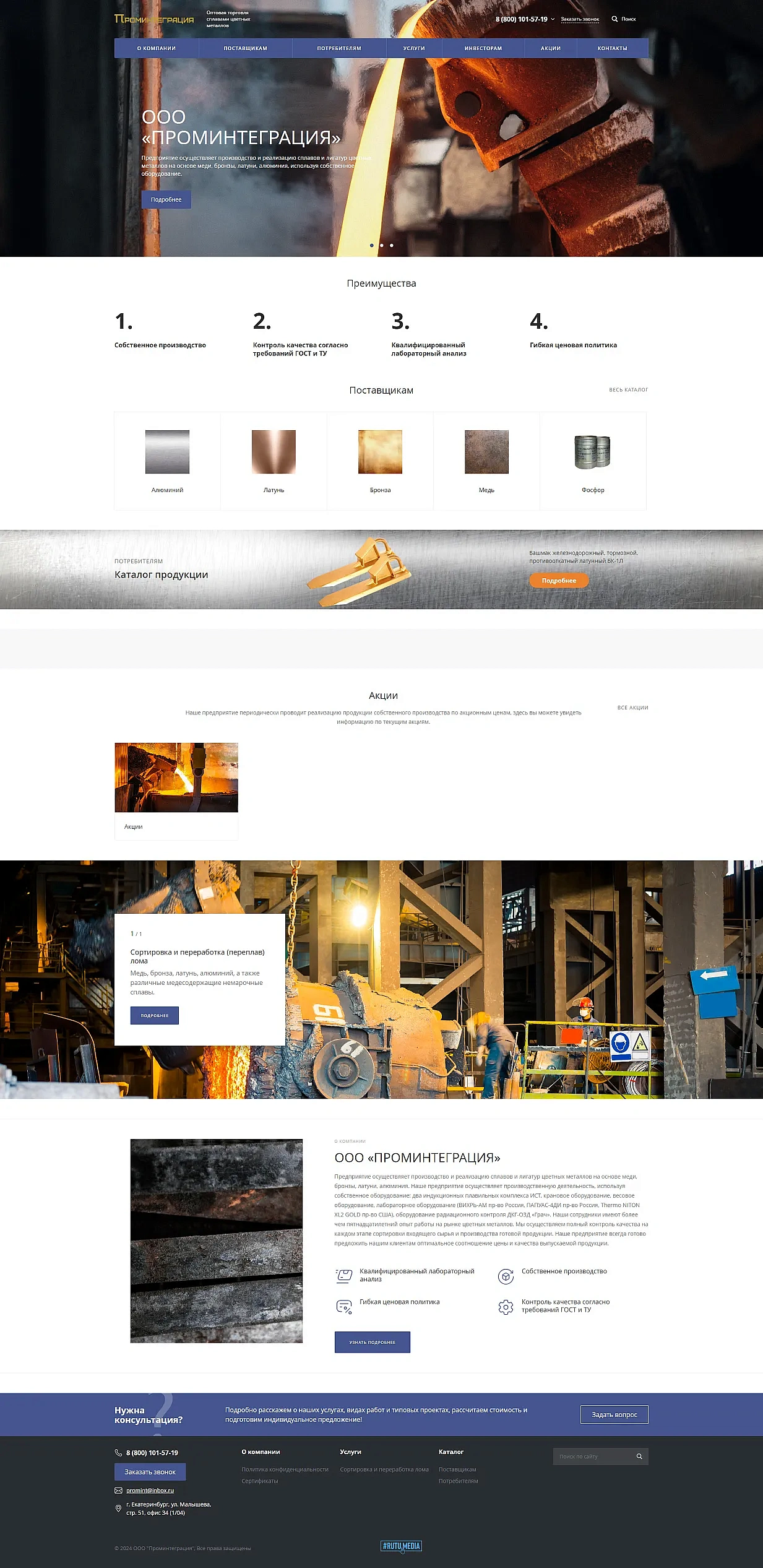 Разработка сайта для производителя сплавов и лигатур цветных металлов «ПРОМИНТЕГРАЦИЯ»