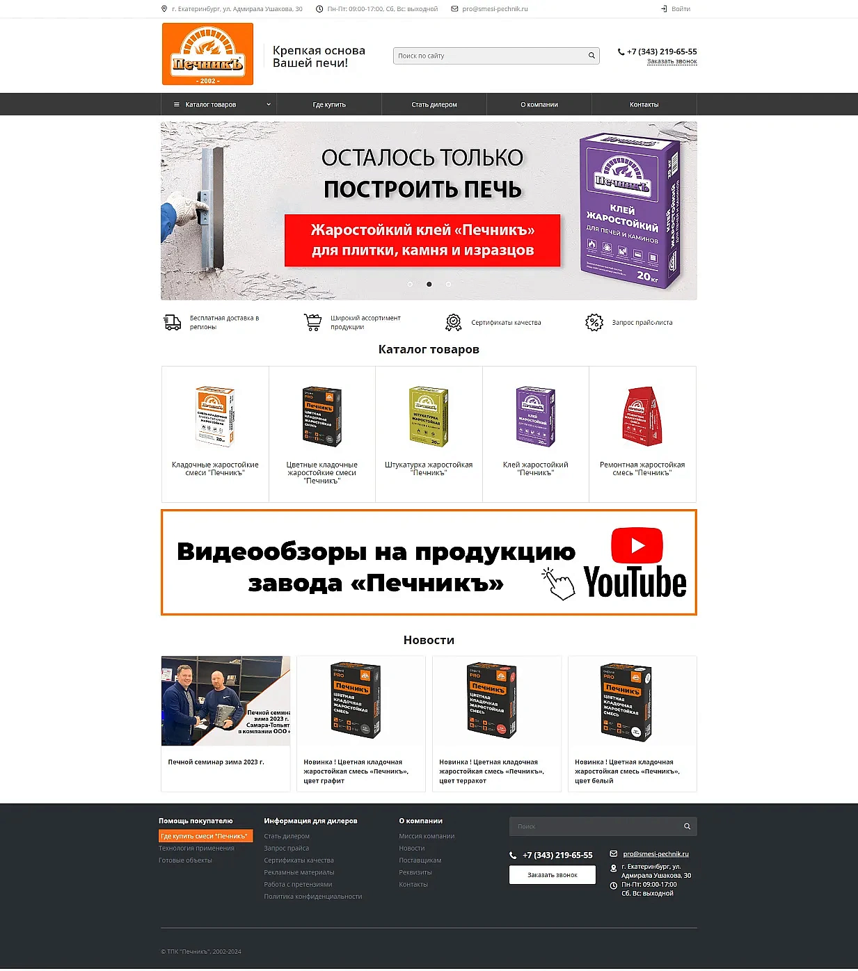 Разработка сайта для производителя жаростойких сухих смесей ТПК «Печникъ»