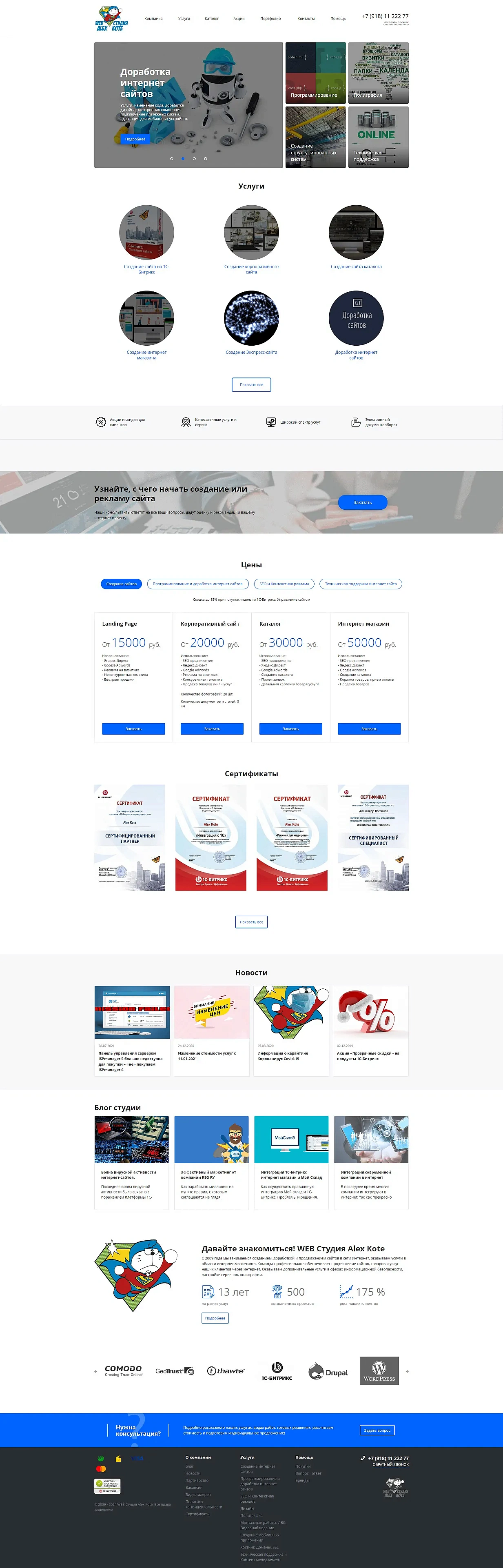 Разработка сайта для веб-студии Alex Kote