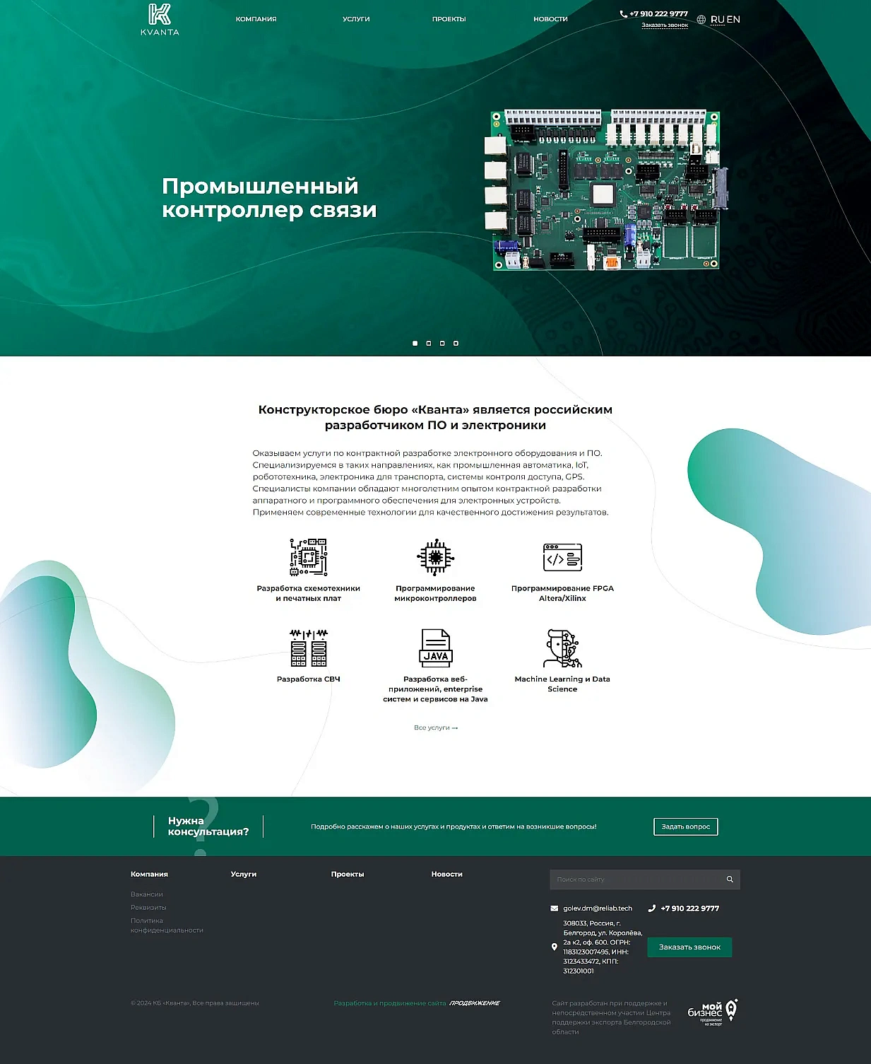 Разработка сайта для конструкторского бюро «Кванта»